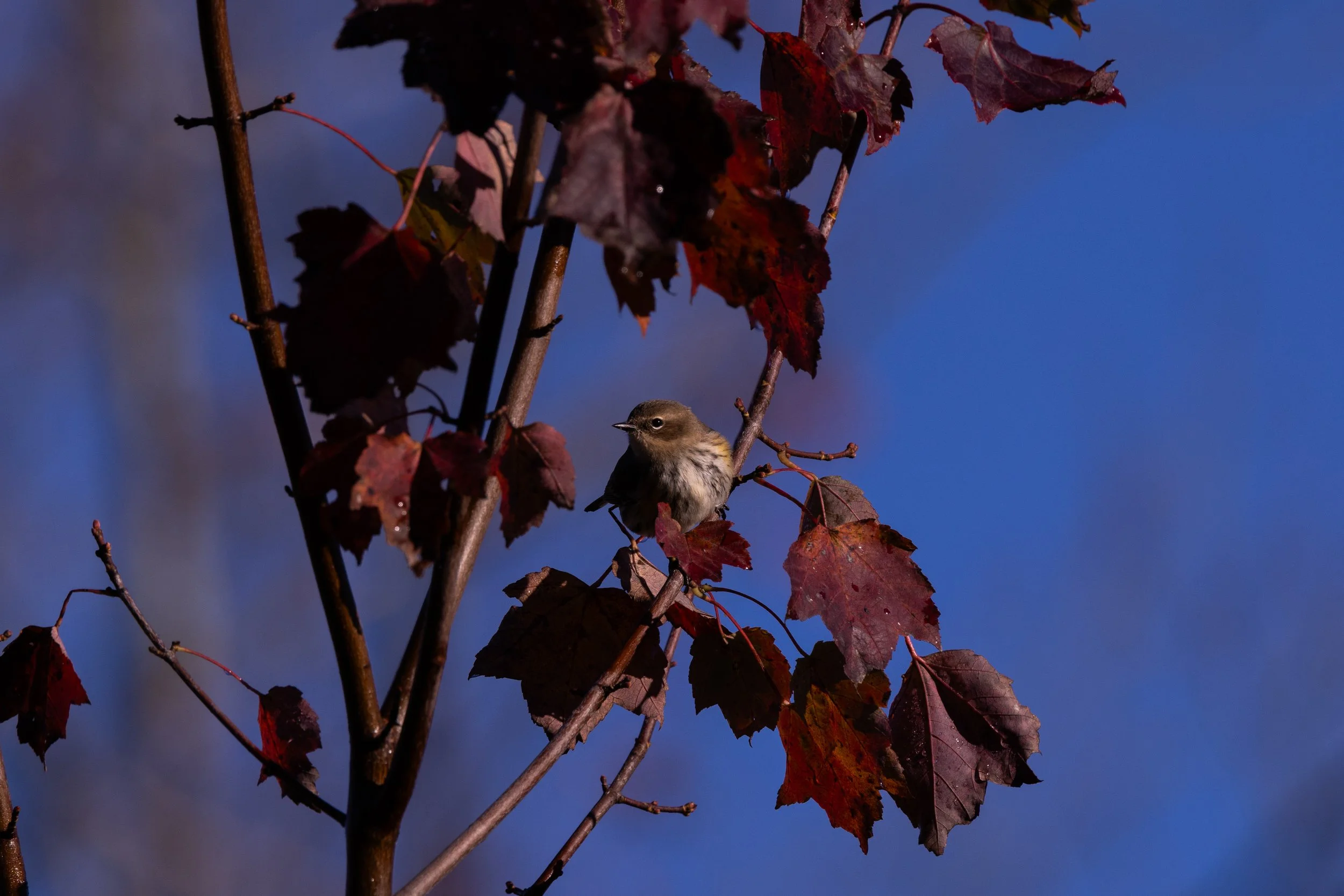 Another bird almost landed on top of me! This little Yellow-rumped landed so close I could have reached out and touched it. I have so wanted to get a nice clean shot of their namesake yellow rump… well, this was the morning for that - !