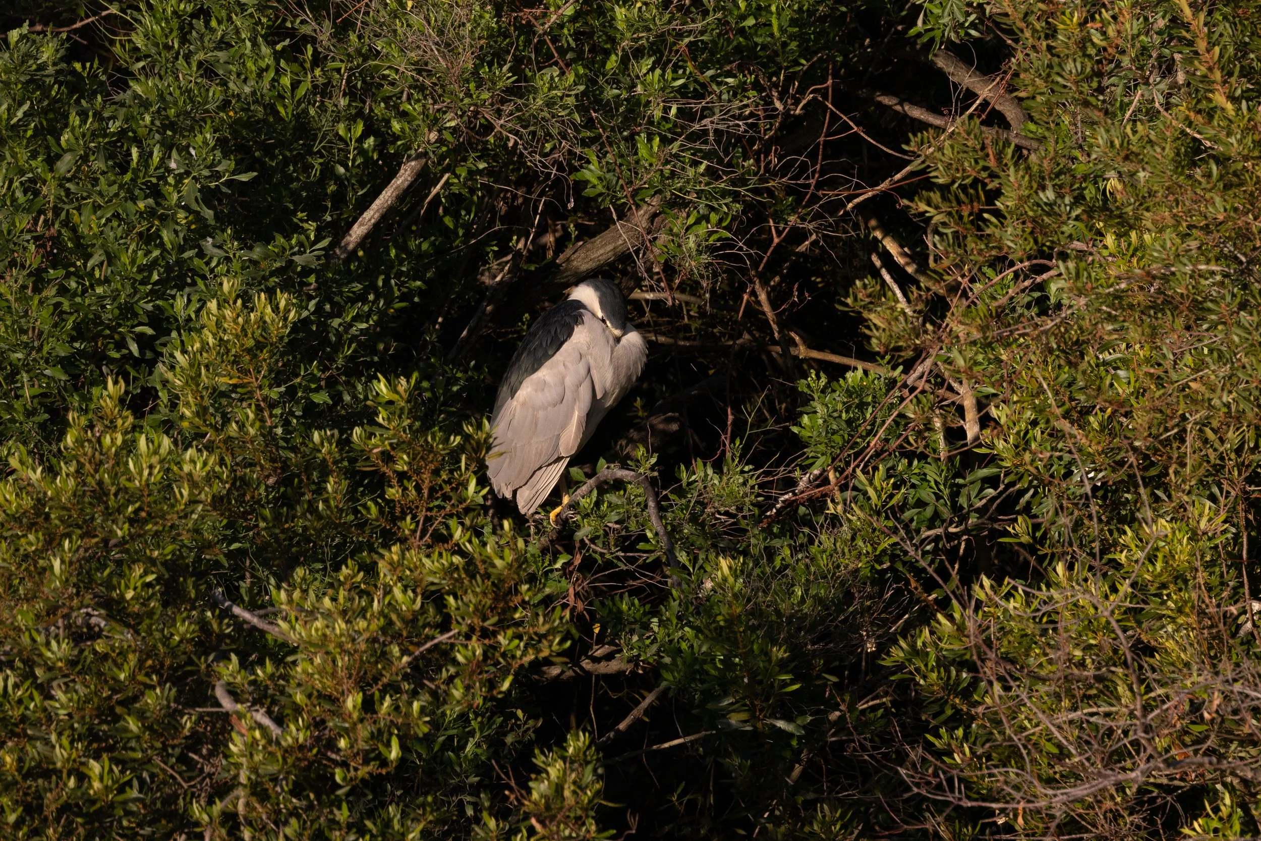 On the other side of the pond this Black Crowned Night Heron was already hunting -