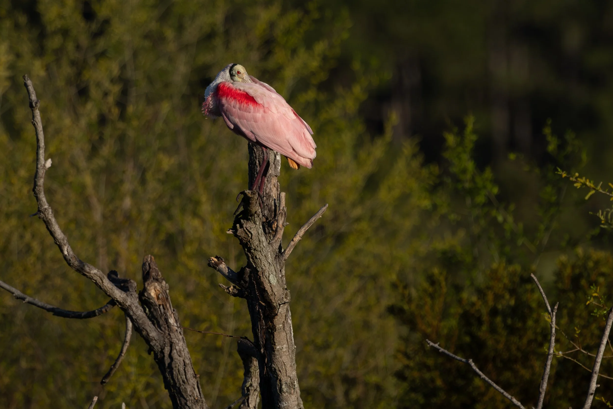 In the far right corner of the pond we spotted adult Roseate Spoonbills in their breeding plumage!