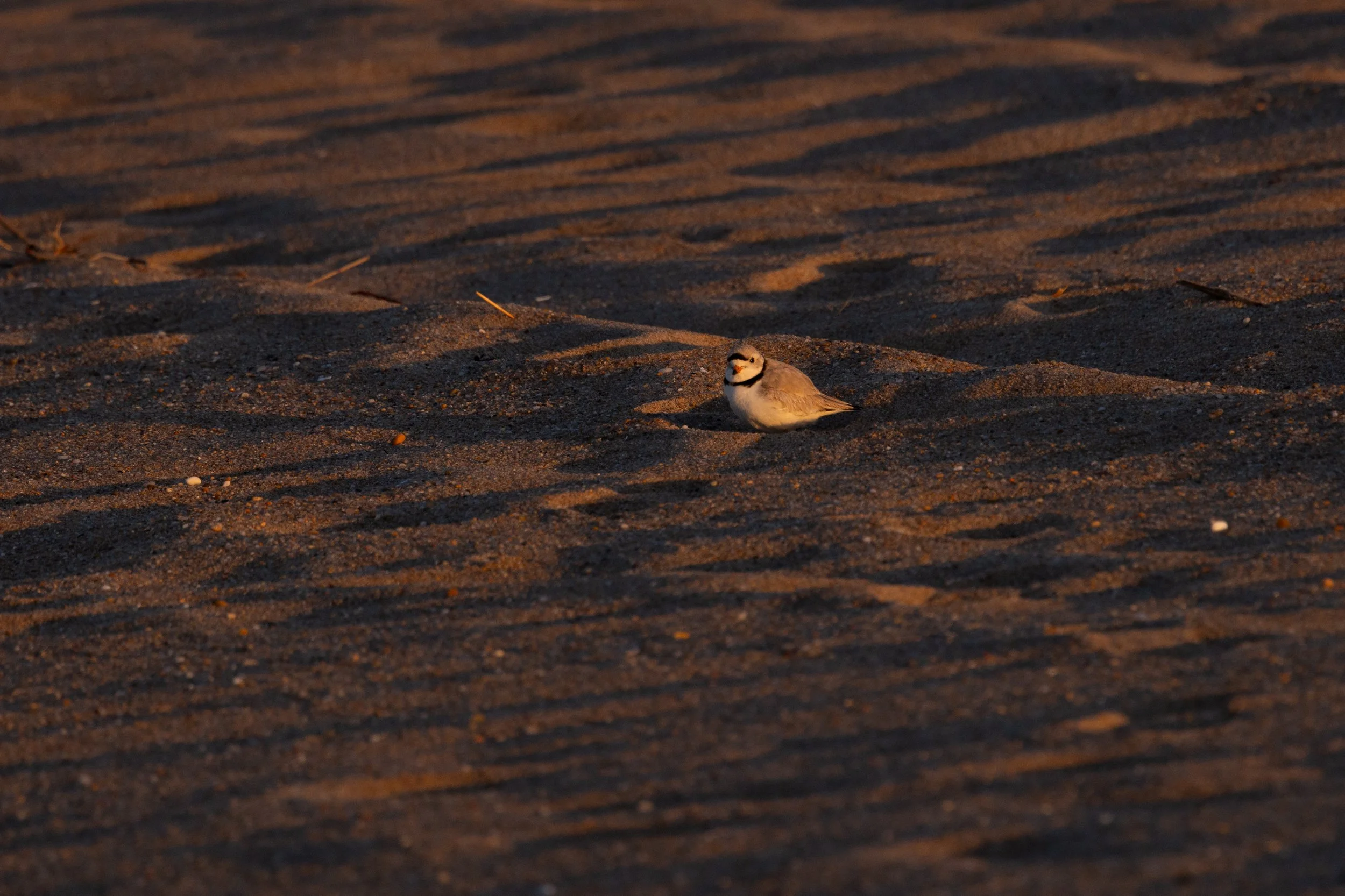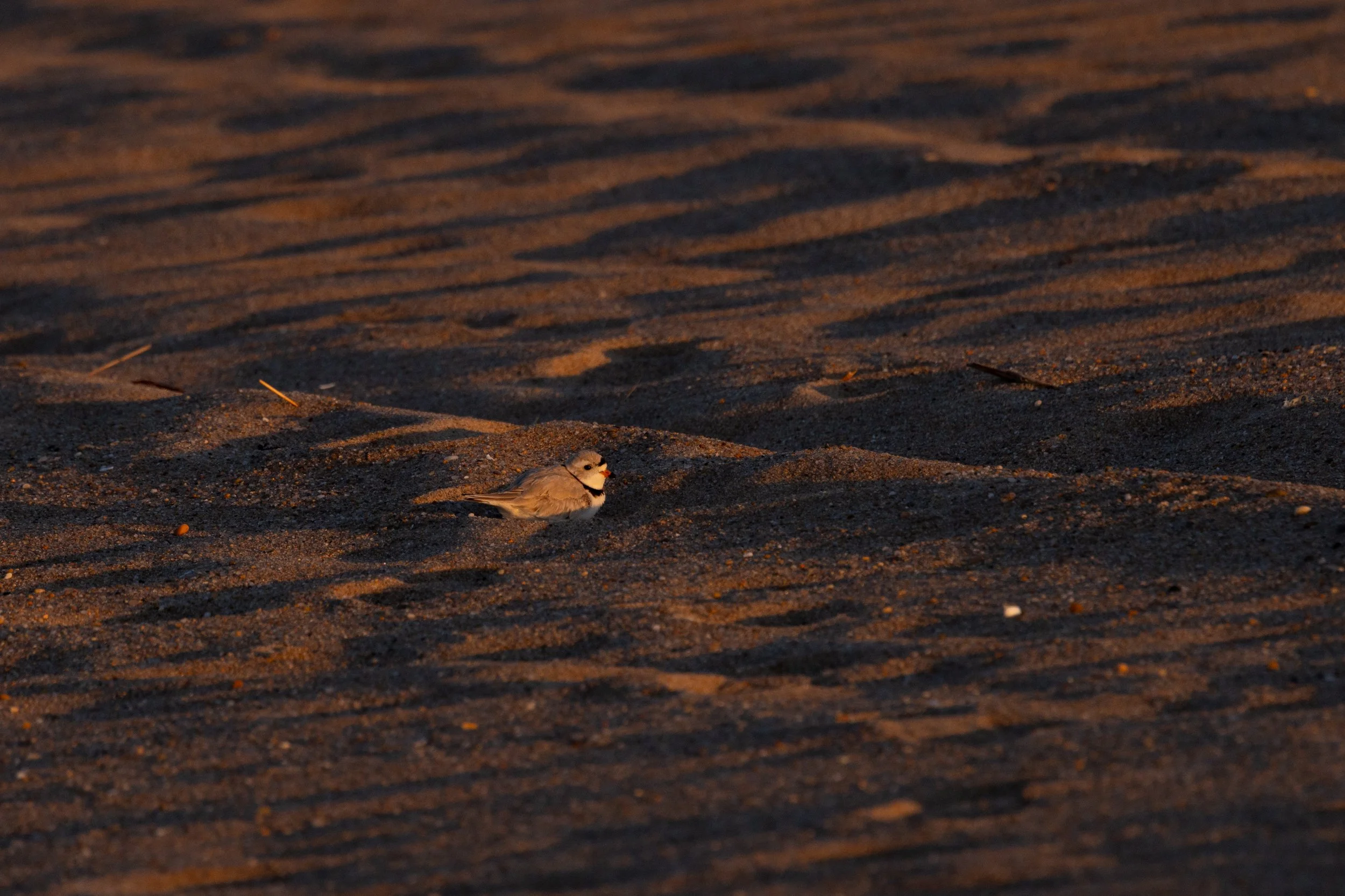 This post consists entirely of Piping Plovers - I was blessed to see 6 different pairs as I walked along the beach. They are an endangered species and they need all of the help they can get from each of us. I could hear their little peeping sounds long before I spotted them. I walked very close to the water’s edge and was very careful with each step to make sure none were in my path. I kept walking east hoping to get beyond them to be able to look back to see them light up with the first of the sun’s rays. I set up my tripod as low as possible and got down on my knees and then a dream unfolded in front of me. I can’t imagine what I looked like them to them - walking crab-like on my knees with my tripod and camera in front of me. As always I stayed a very safe distance from them and they never seemed bothered at all by my presence… they just seemed curious.
