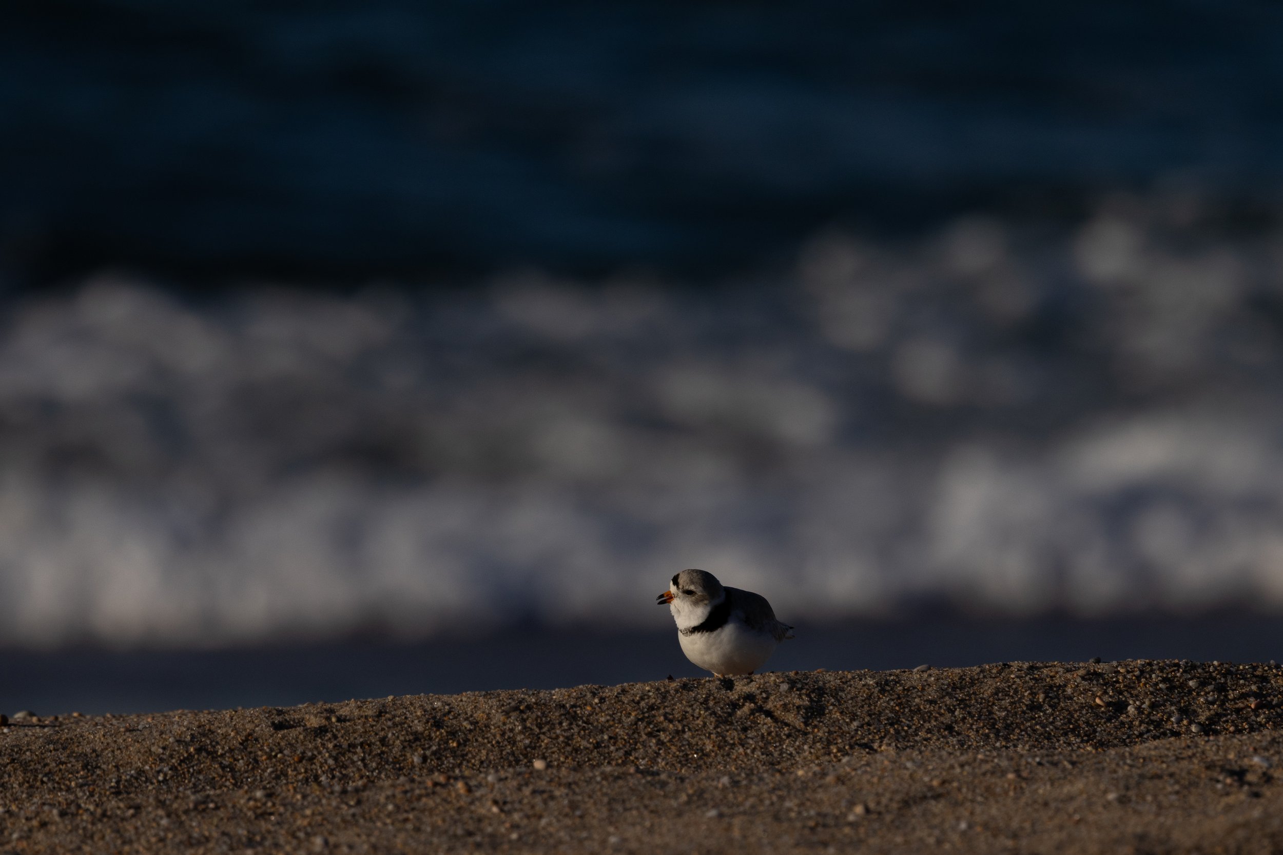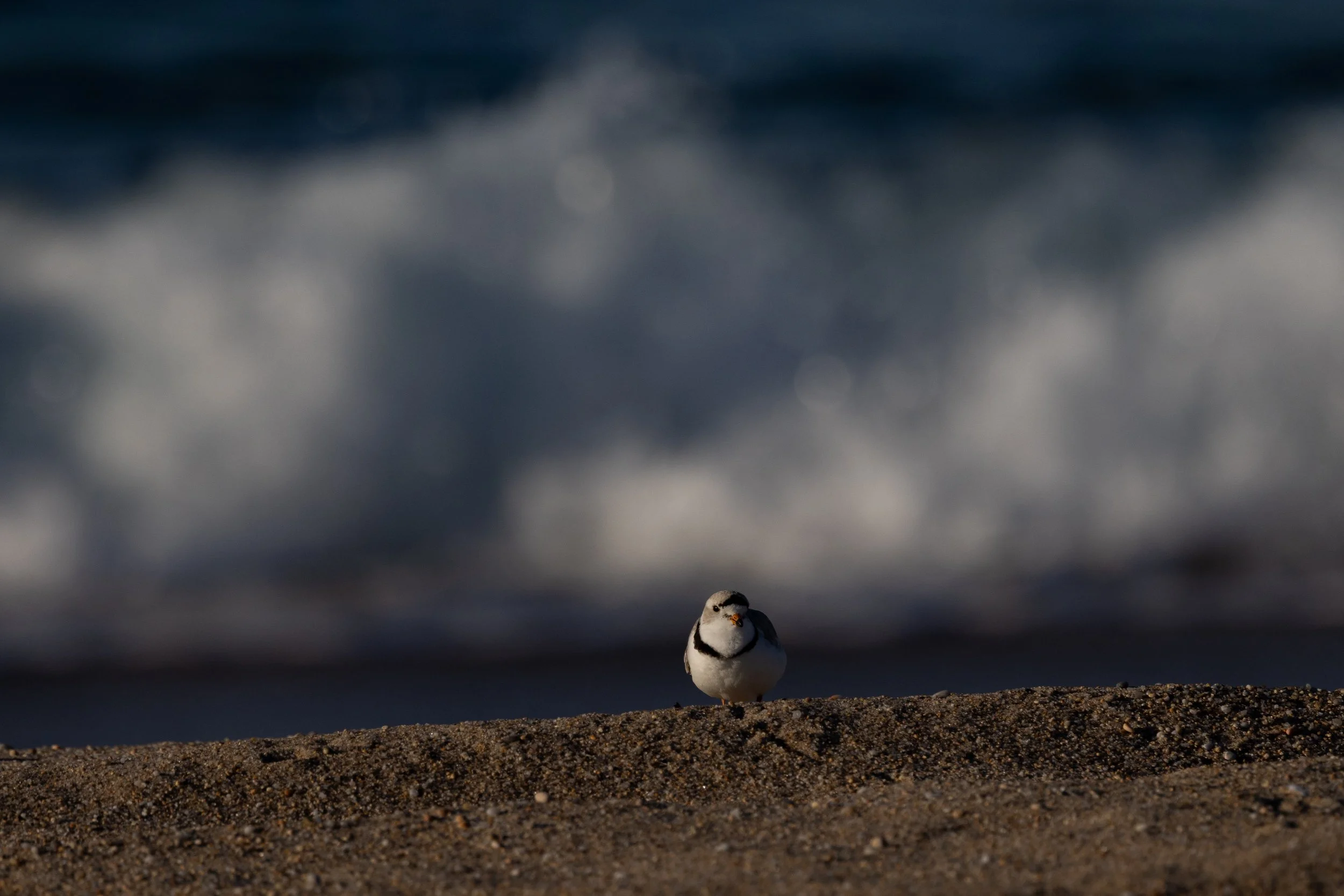 Once the sun was fully up over the horizon I picked up my gear and then positioned myself above the piping plovers looking towards the crashing surf….